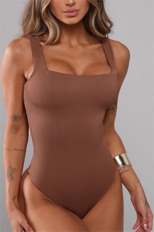 Body Alça Larga Canelado Decote Quadrado Laura