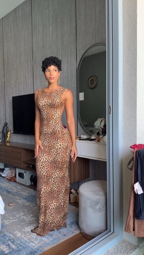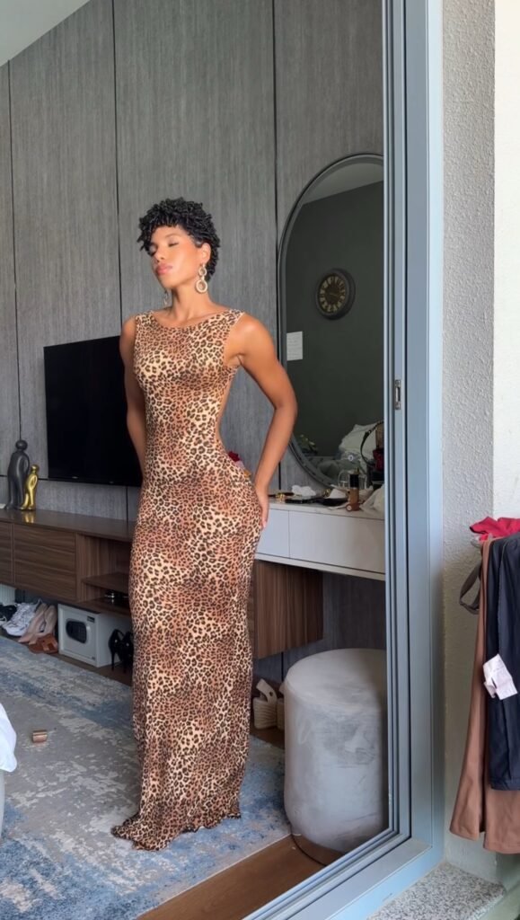 Elegância e atitude em um vestido só. Modelagem justa que valoriza cada curva, estampa animal print atemporal e caimento premium que faz qualquer look pedir foto.